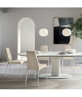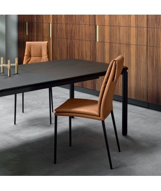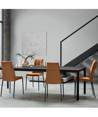 CARMEN è caratterizzata per essere una sedia dalla figura slanciata ed elegante. Le 4 gambe in metallo, sottili e resistenti, ne sottolineano il minimalismo e la raffinatezza, mentre il sedile si contraddistingue per l'utilizzo armonico delle forme reso più soffice e confortevole dall'imbottitura con cuscino fisso. Un insieme pensato per conferire armonia visiva al prodotto: "forma" che diventa "funzione”