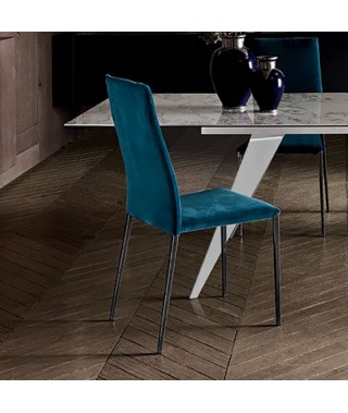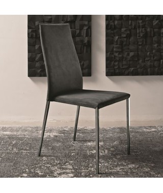 Sedia con schienale flessibile ergonomico e non, struttura in Acciaio laccato o Cromato, imbottita e rivestita e sedia e struttura in Acciaio laccato alluminio.