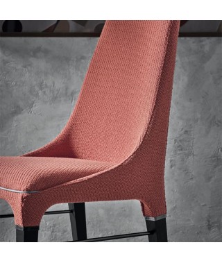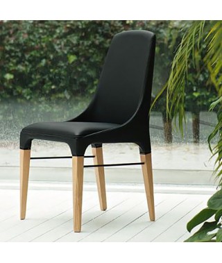 Sedia con struttura in Legno massello e dettagli di struttura in Acciaio laccato. Monoscocca imbottita e rivestita in Pelle Ecologica, Velluto tecnico, tessuto Mambo e Lulù, Waterproof Nabuk, Waterproof Nabuk stampato, Pure Virgin Wool, Velluto, tessuto Decò, tessuto Kvadrat e Pelle Premium.