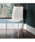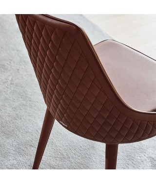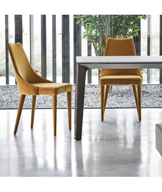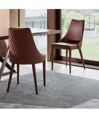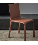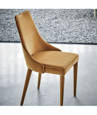 Sedia imbottita e rivestita o con gambe in Acciaio a vista. Bordino a scelta in tinta o in contrasto.