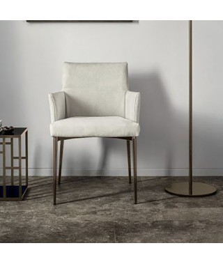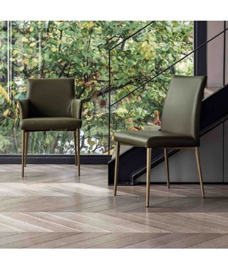 Sedia con struttura in Acciaio. Seduta e schienale imbottiti e rivestiti.