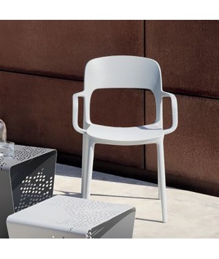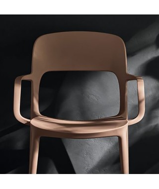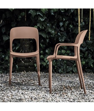 Sedia con e senza braccioli con struttura integrale in Polipropilene e Fibra di vetro riciclabile. Impilabile e adatta anche per l'outdoor.