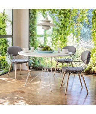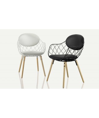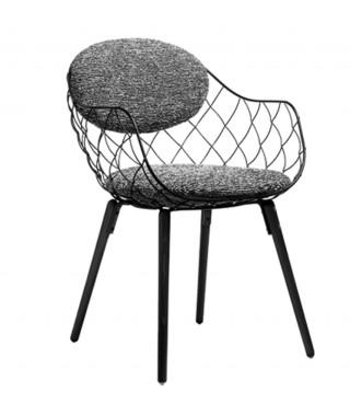 Poltrona in telaio in tubo d'acciaio trattato cataforeticamente e dipinto in polvere di poliestere. Guscio in asta d'acciaio trattata cataforeticamente e verniciata in polvere di poliestere.