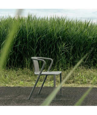 Sedia impilabile con braccioli, adatta anche per esterni.