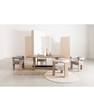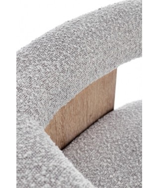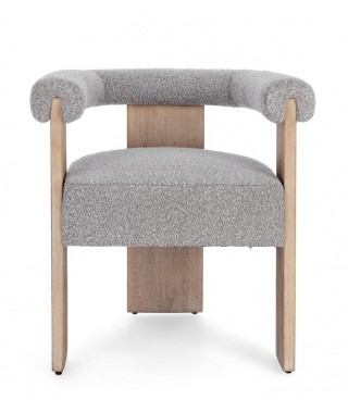 STRUTTURA IN LEGNO DI PINO E COMPENSATO. GAMBE IN RUBBERWOOD. RIVESTIMENTO IN POLIESTERE EFFETTO BOUCLE'. DENSITA' IMBOTTITURA IN SCHIUMA POLIURETANICA 18/30 KG/M3.