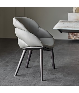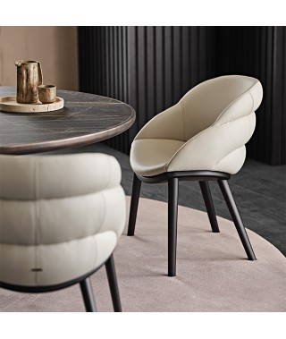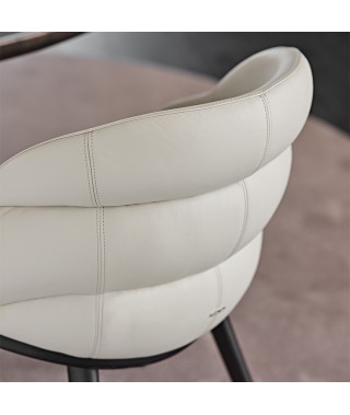 Un design sinuoso e avvolgente, che sostiene la postura e rende la sala da pranzo moderna un ambiente accogliente. La poltroncina Camilla, con le sue linee delicate e sensuali, completa la stanza con eleganza. Le cuciture orizzontali sullo schienale creano tre sporgenze imbottite che terminano nel bracciolo con fluidità. La struttura profonda e l’innesto delle gambe sottolineano le curve avvolgenti. Disponibile con gambe in legno pregiato (Camilla) o in metallo (Camilla ML), entrambe le varianti trovano l’equilibrio tra la seduta voluminosa e le gambe aggraziate. Per completare l’ambiente, gli sgabelli da cucina Camilla Sgabello, con struttura in metallo disponibile in diverse altezze e forme, si abbinano agli eleganti pellami e tessuti a campionario. Infine, la poltrona girevole Camilla Lounge, con la sua ampia seduta tondeggiante e la base metallica, completa la famiglia. Disponibile anche in versione fissa, con struttura a quattro gambe metalliche.
