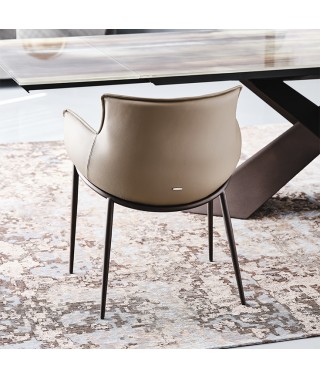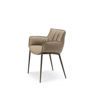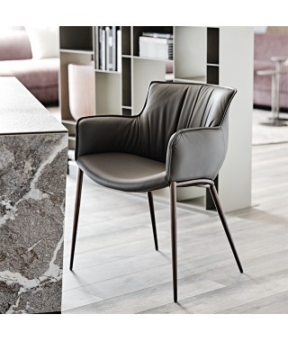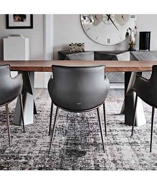 La famiglia di sedute Rhonda, dalle forme tondeggianti, offre un’eleganza naturale per arredare sale da pranzo di design. Le morbide pieghe interne contrastano con la scocca tesa.