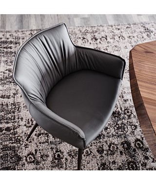 Infine, la poltrona girevole Rhonda Lounge, con ampia seduta tondeggiante e base girevole.