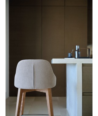 Uno sgabello importante, che nelle sue imbottiture piene e lo schienale leggermente avvolgente privilegia il comfort e l’idea di accoglienza. È un complemento attuale, dai tratti piacevolmente eleganti che trasmettono una sensazione di solida stabilità.