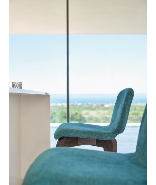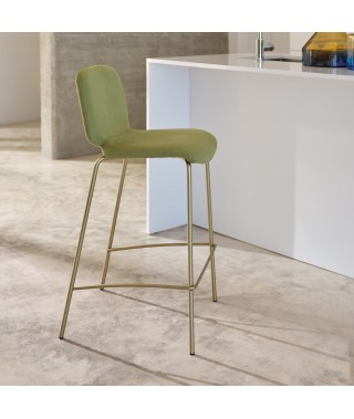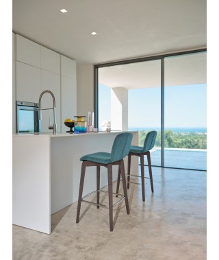 L’imbottitura, spessa e dalla sagoma generosa, ne fa uno sgabello davvero comodo, perfetto per lunghe soste ad ogni postazione da banco, o anche in un ambiente kitchen, in tutte le possibili configurazioni di alzata e tessuti.