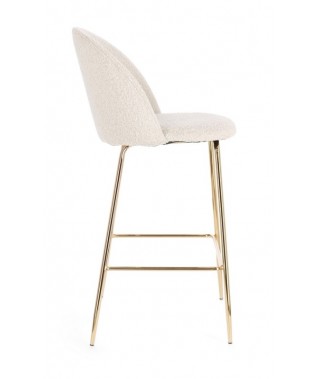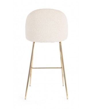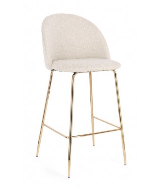 GAMBE IN ACCIAIO, CROMATURA DORATA. IMBOTTITURA IN SCHIUMA POLIURETANICA DENSITA' 18KG/M3. RIVESTIMENTO IN 95% POLIESTERE 5% ACRILICO EFFETTO BOUCLE'