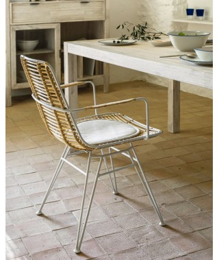 • Sedia con struttura in acciaio, rivestita in rattan per una maggiore praticità e comodità.