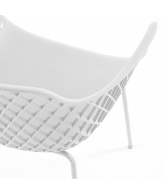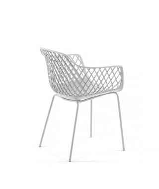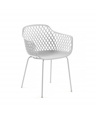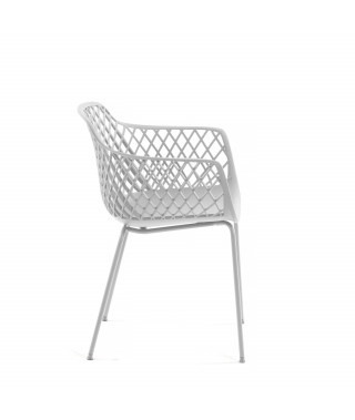 La seduta della sedia Quinn è di plastica bianca riciclabile, con braccioli, e poggia su una struttura metallica con la stessa finitura. Si tratta di un oggetto polivalente, ideale anche per le aree comuni, come la tua cucina o la sala da pranzo, your private zone, la tua zona di studio o quella di lettura. Una sedia con infinite possibilità per i tuoi interni ed esterni. Show it