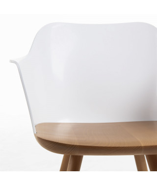 Bjorg Sedia braccioli legno naturale plastica bianca
