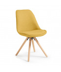 Sedia imbottita in tessuto, parte posteriore del sedile trapuntata. Gambe in legno massello di faggio.