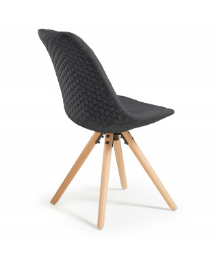 LARS Sedia Legno Naturale tessuto trapunta grigio scuro