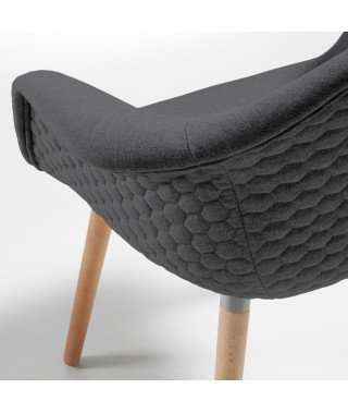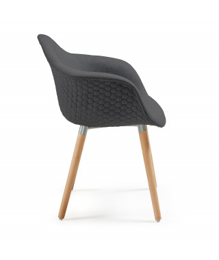 KENNA Sedia braccioli legno nat tessuto grigio scuro