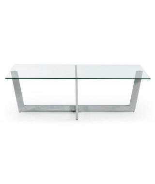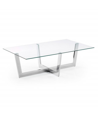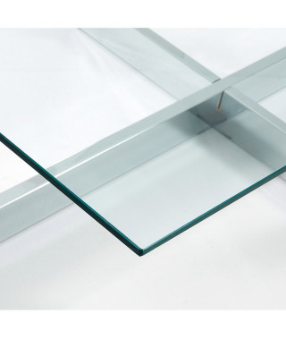 Tavolino con gambe in acciaio cromato. Piano in vetro temperato trasparente. Spessore del vetro 8 mm.