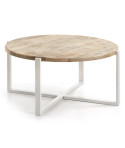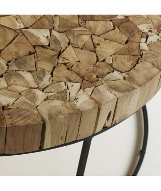 Tavolino in mosaico di teak. Struttura in ferro. Questo prodotto è fabbricato con materiali naturali riciclati e quindi suscettibili a piccole variazioni.
