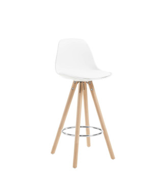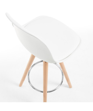 Lo sgabello Slad, con seduta in polipropilene bianco e gambe in legno di faggio naturale a forma di treppiede, ha le migliori finiture. Da un lato, lo schienale crea una forma leggermente curva per il massimo comfort, oltre ad avere il sedile imbottito. E, d'altra parte, ha un poggiapiedi a forma di anello in metallo. Il tuo con lo sgabello Slad sarà per tutta la vita.