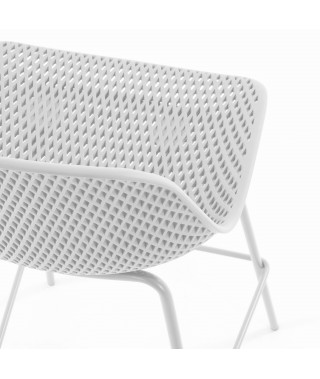 La seduta dello sgabello Quinby è di plastica bianca riciclabile e poggia su una struttura metallica con la stessa finitura. Si tratta di un oggetto polivalente, ideale per la tua cucina americana o la terrazza coperta. Uno sgabello con infinite possibilità per i tuoi interni. Show it.