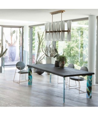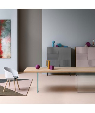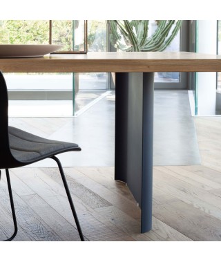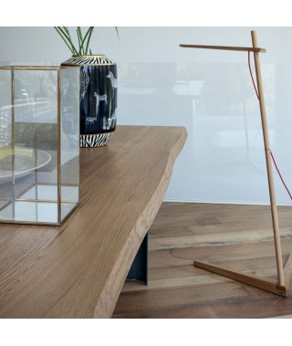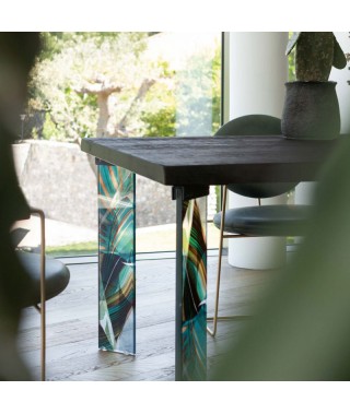 Numerose sono le tipologie di gambe, disponibili in tre materiali pregiati. Il legno per dare continuità al piano, il ferro per creare contrasto ed il vetro per alleggerire la struttura e dare ancora più valore al legno.