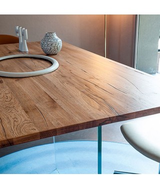 Molteplici soluzioni per personalizzare ancora di più il tavolo e soddisfare qualsiasi esigenza. Si può spaziare tra le varianti in legno che garantiscono una continuità con il piano, il ferro in tutte le sue finiture, per creare un piacevole contrasto oppure il vetro per allegerire la struttura facendola quasi sparire con il fine di impreziosire ancora di più la nobiltà del piano in massello.