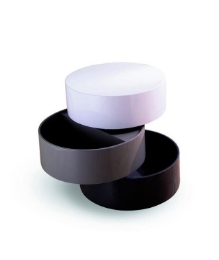 • n.3 ripiani contenitori girevoli laccati, bianco, grigio chiaro e grigio scuro