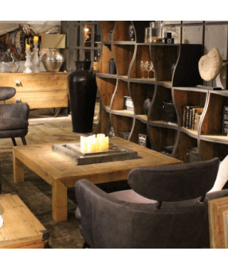 Tavolino quadrato in legno vecchio riciclato, top a quadrotte finitura Naturale.