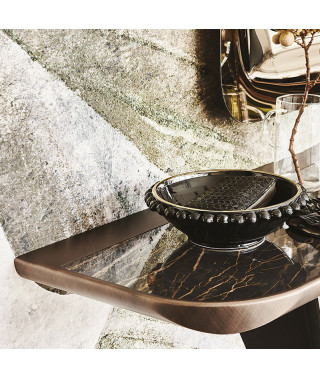 Consolle con base in acciaio verniciato goffrato titanio (GFM11), bronzo (GFM18), graphite (GFM69), bianco (GFM71), nero (GFM73), mix (GFM69-GFM71), Brushed Bronze o Brushed Grey.