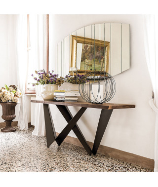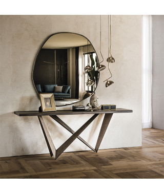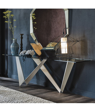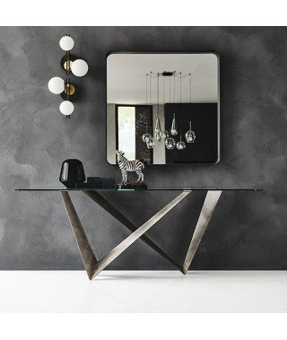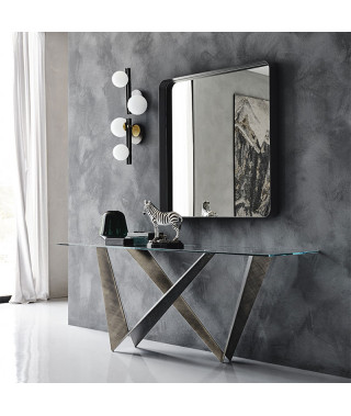 Consolle con base in acciaio verniciato goffrato titanio (GFM11), bronzo (GFM18), graphite (GFM69), bianco (GFM71), nero (GFM73), mix (GFM69-GFM71), Brushed Bronze o Brushed Grey.