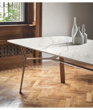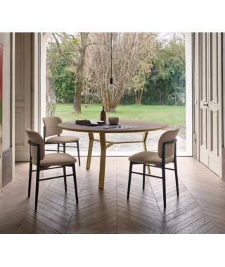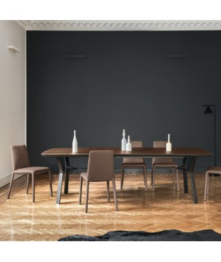 Iron, una proposta di tavoli fissi con basamento in acciaio sagomato al laser con bordi raggianti.