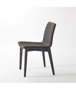 La struttura è in massello di Frassino tinto Rovere o tinto Noce, la scocca è in Betulla curvato, il rivestimento non sfoderabile è in tessuto, ecopelle e pelle.