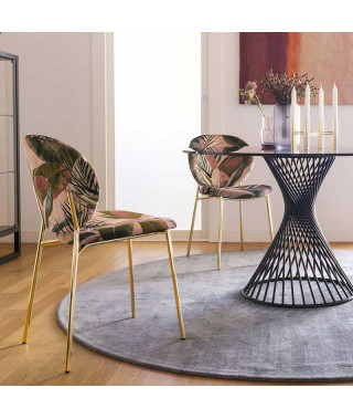 La struttura in metallo sostiene con eleganza e leggerezza sedile e schienale, caratterizzati da una silhouette tondeggiante ed accogliente.