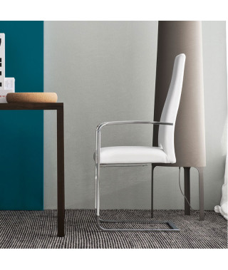 L'utilizzo del tubolare di acciaio ha permesso di realizzare una sedia dalla struttura leggera e resistente con le quattro gambe dalla linea molto sottile a sezione rettangolare. La seduta interamente imbottita, il sedile a cinghie elastiche e l'alto schienale sagomato, che nella parte inferiore presenta un'apertura "a spicchio di luna", garantiscono il massimo confort.