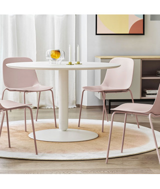 BALANCE è un tavolo fisso, caratterizzato da una silhouette semplice ma iconica, e da una linea armonica che assembla tre elementi: base bombata, colonna centrale, piano tondo.