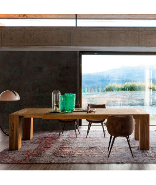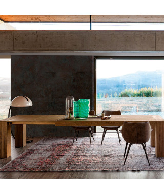 Conservando la sua maestosità, il tavolo Brooklyn diventa di volta in volta più imponente grazie alle allunghe indipendenti rese invisibili dal sistema di rivestimento delle guide, immancabilmente in legno massello.