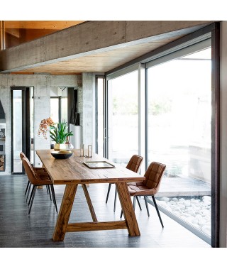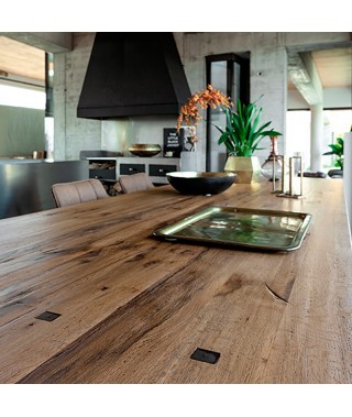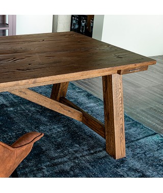 Castle nasce come elemento di rottura, capace di caratterizzare in modo indelebile qualsiasi locale lo circondi. Interamente ricavato da Rovere massello, il tavolo in legno materico è riletto secondo i canoni contemporanei e trova collocazione ideale anche nel concept d’arredo più moderno.