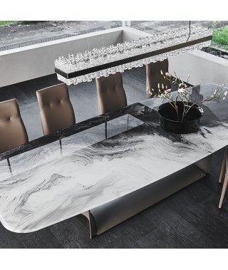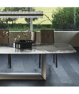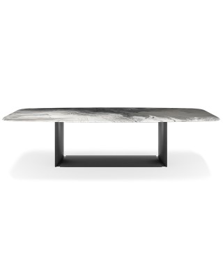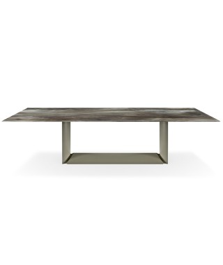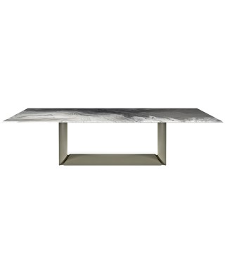 Tavolo con base in acciaio verniciato goffrato titanio (GFM11), bronzo (GFM18), graphite (GFM69) o nero (GFM73).