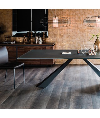 Tavolo con base in acciaio verniciato goffrato titanio (GFM11), bronzo (GFM18), graphite (GFM69), bianco (GFM71) o nero (GFM73).