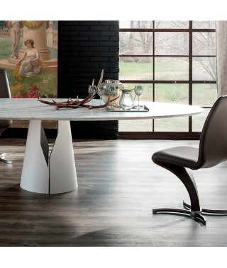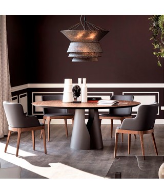 Tavolo con base in acciaio verniciato goffrato titanio (GFM11), bronzo (GFM18), graphite (GFM69), bianco (GFM71) o nero (GFM73).