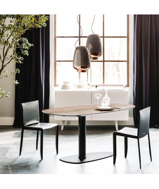 Tavolo con base in acciaio verniciato goffrato titanio (GFM11), graphite (GFM69) o nero (GFM73).