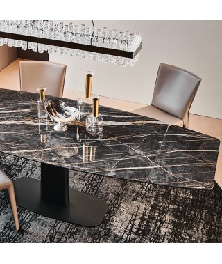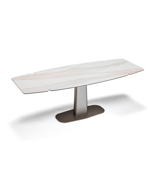 Tavolo allungabile con colonna e base in acciaio verniciato goffrato titanio (GFM11), graphite (GFM69), nero (GFM73) o colonna in cromo nero (06) e base goffrato nero (GFM73).