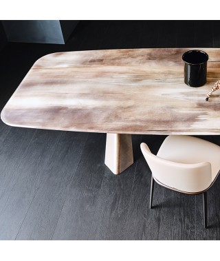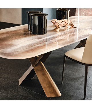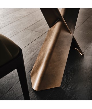 Tavolo con base in acciaio verniciato goffrato titanio (GFM11), bronzo (GFM18), graphite (GFM69) o nero (GFM73), Brushed Bronze o Brushed Grey.