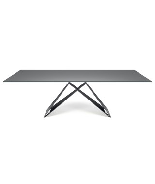 Tavolo con base in acciaio verniciato goffrato titanio (GFM11), bronzo (GFM18), graphite (GFM69) o nero (GFM73).