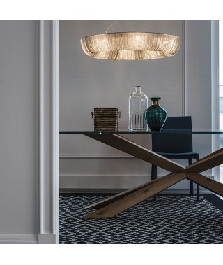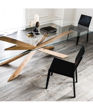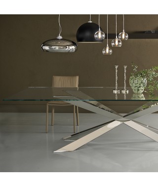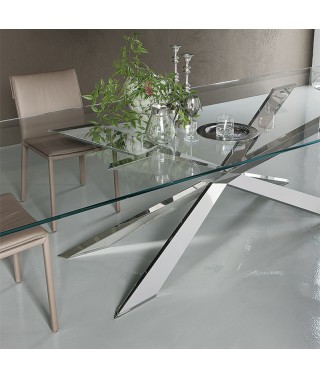 Piano in appoggio in cristallo 15mm trasparente, trasparente extrachiaro o trasparente extrachiaro con bordi bisellati inversi. I piani 182x90 e 200x106 hanno spessore 12mm.
