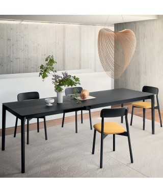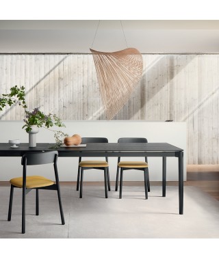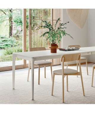 Caratterizzato da forme smussate e minimal, il tavolo NORDIC trae ispirazione dal design scandinavo ed è realizzato con materiali caldi e forme accoglienti. Particolarmente distintivo il disegno del traverso in legno massello, elemento strutturale a cui si innestano senza soluzione di continuità le slanciate gambe tornite e le guide in alluminio