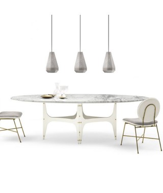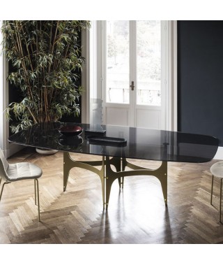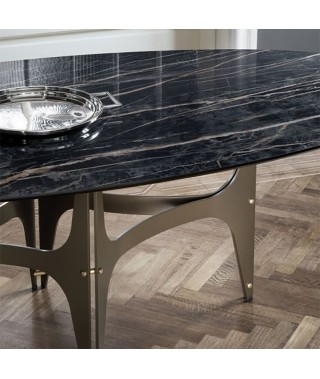 Tavolo fisso, struttura e dettagli decorativi in Acciaio laccato.