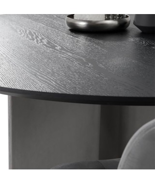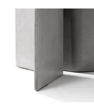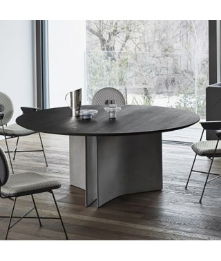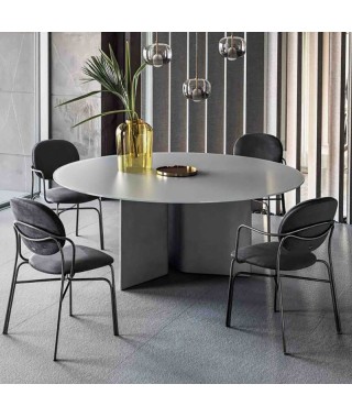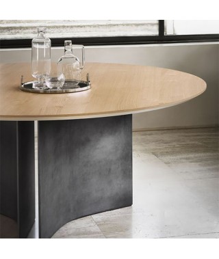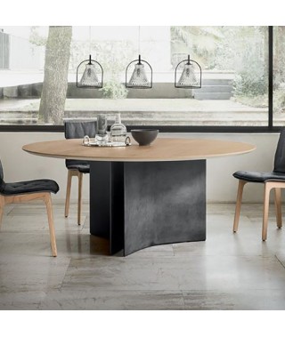 Tavolo rotondo fisso con base in cemento e piano in legno impiallaciato, Cristallo lucido, Cristallo antigraffio opaco o SuperMarmo.