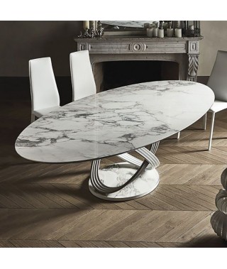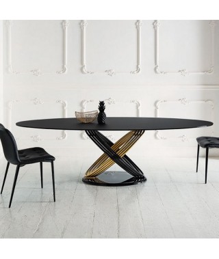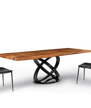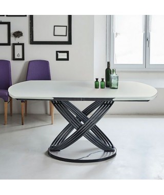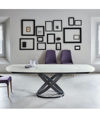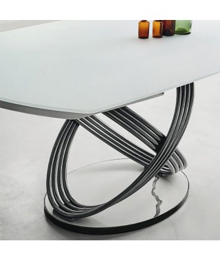 Tavolo fisso o allungabile con struttura ad anelli in Acciaio laccato.